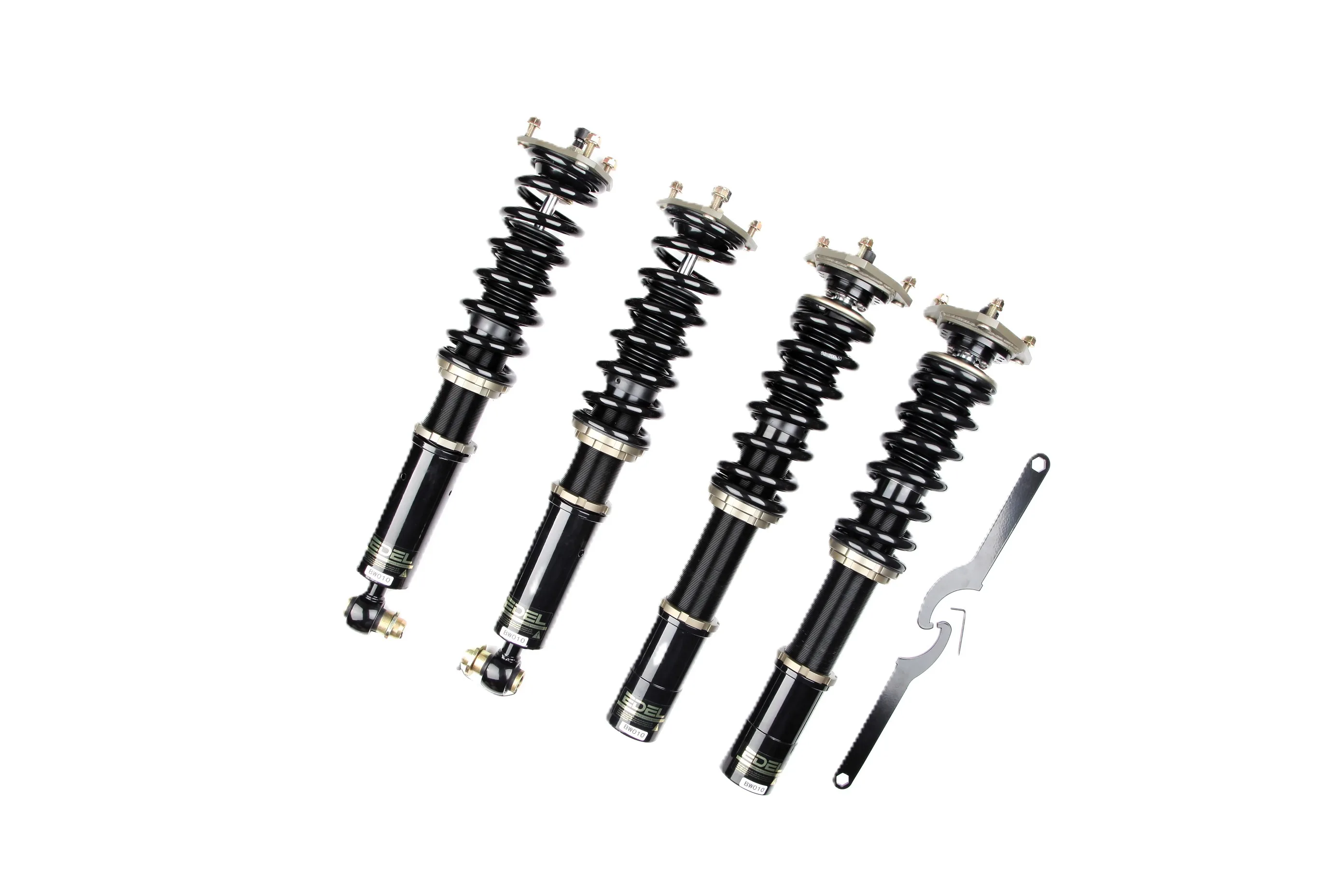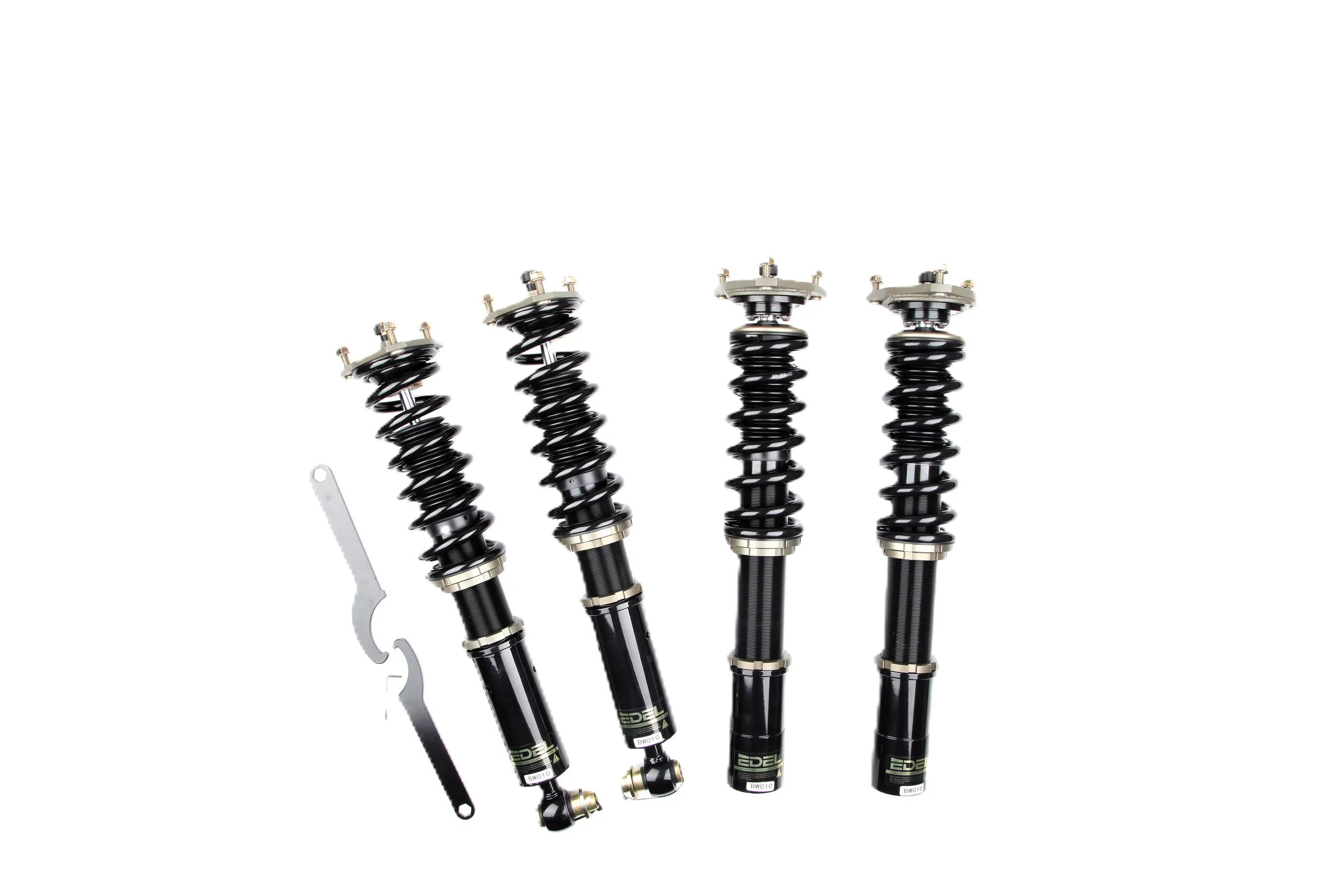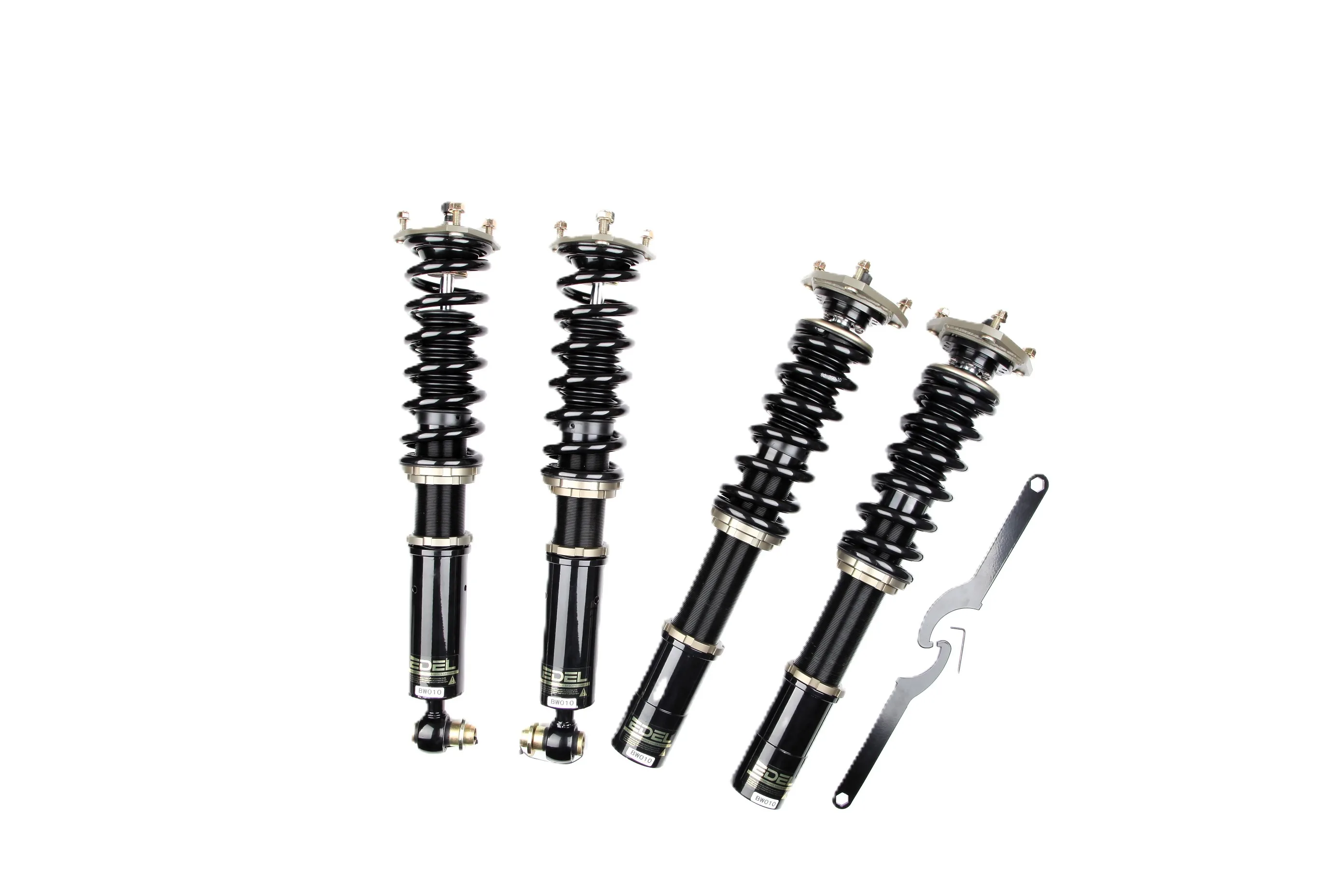 Пружины перед 12 кг, зад 8 кг. Полный комплект регулируемых амортизаторов перед + зад (4шт). Задние койловеры без шаровых соединений (на резиновых втулках). Фултап, регулировка высоты и жесткости 32 щелчка. Производство в г. Шанхай. Собственный завод.