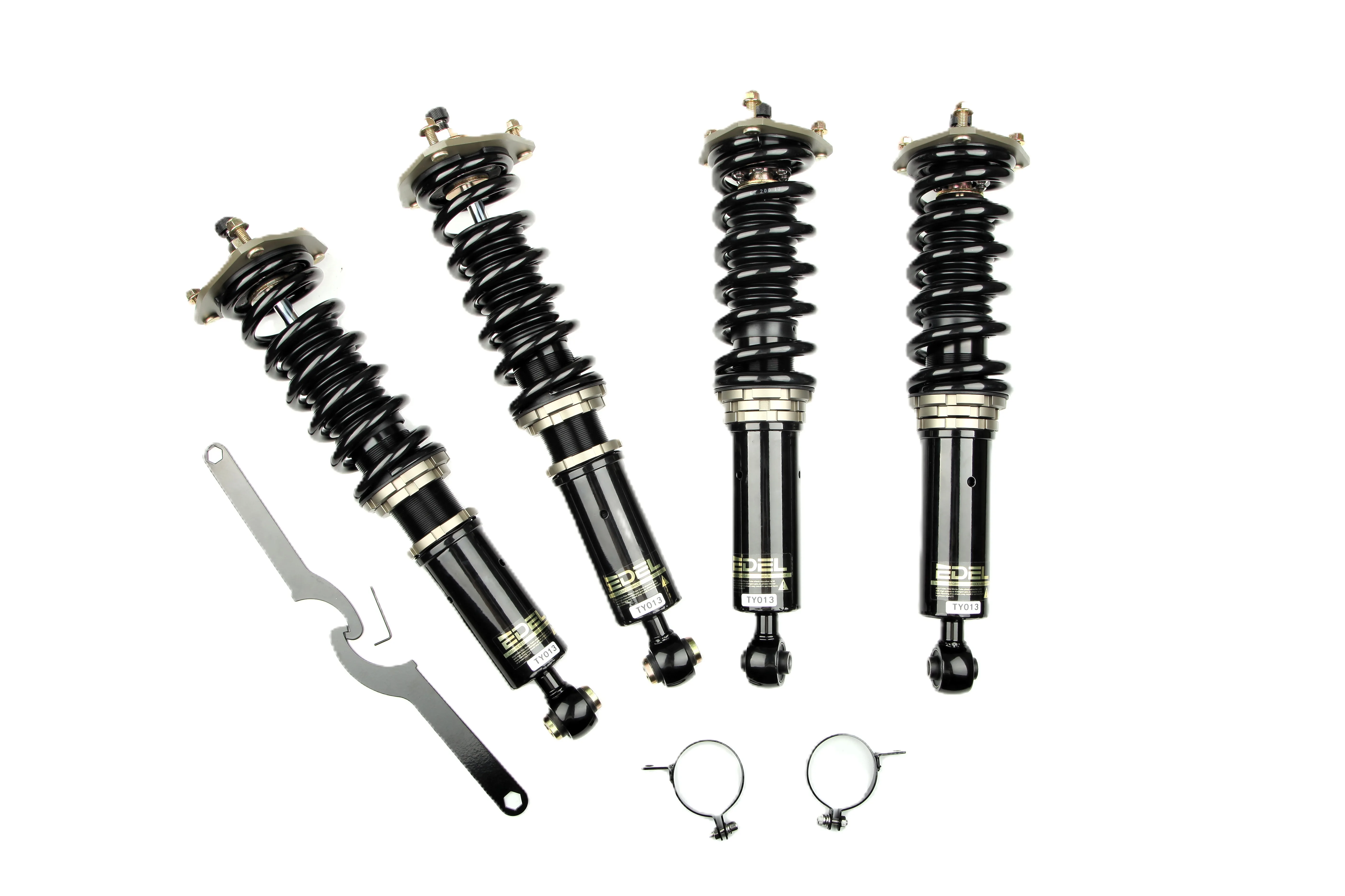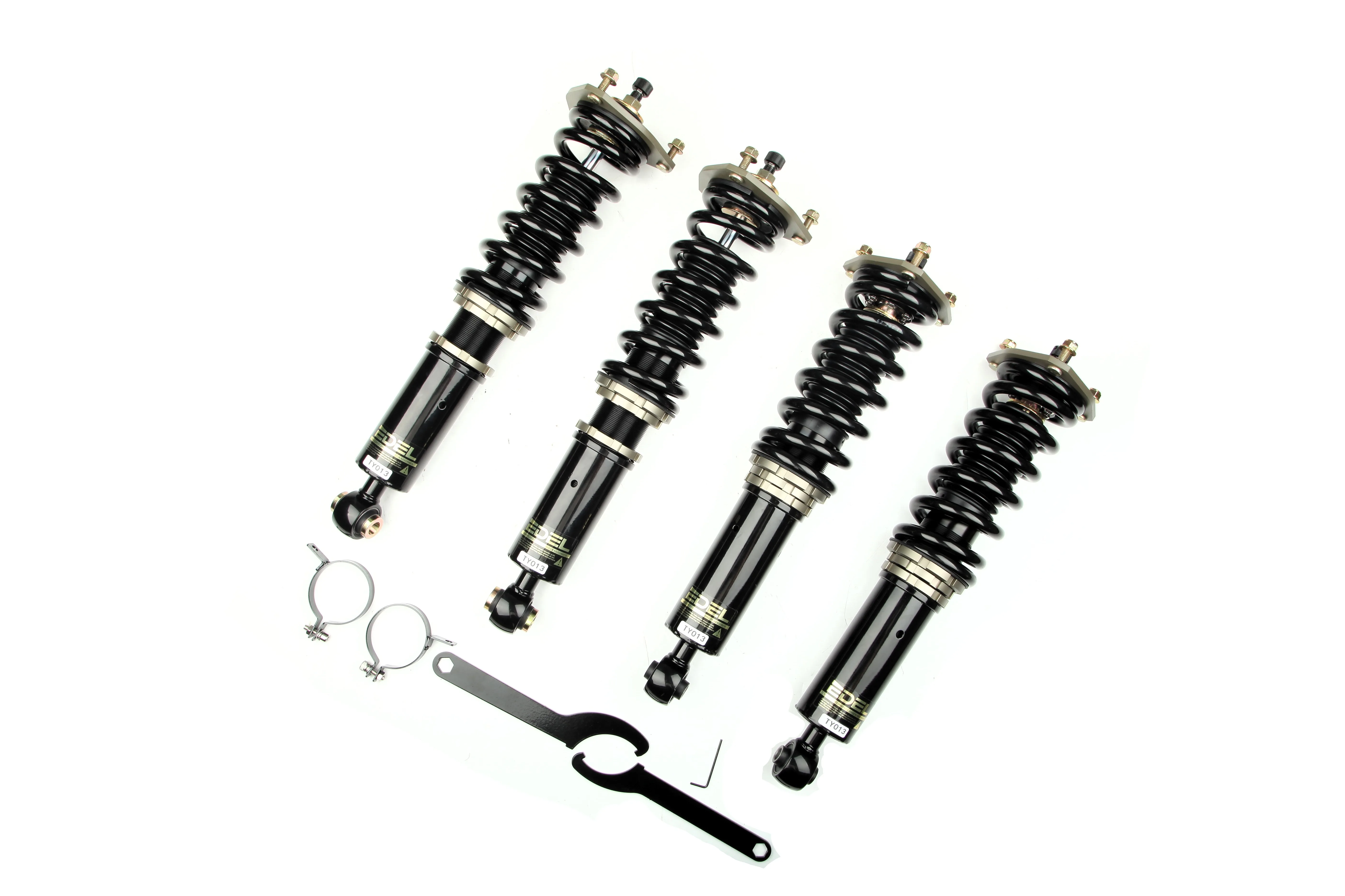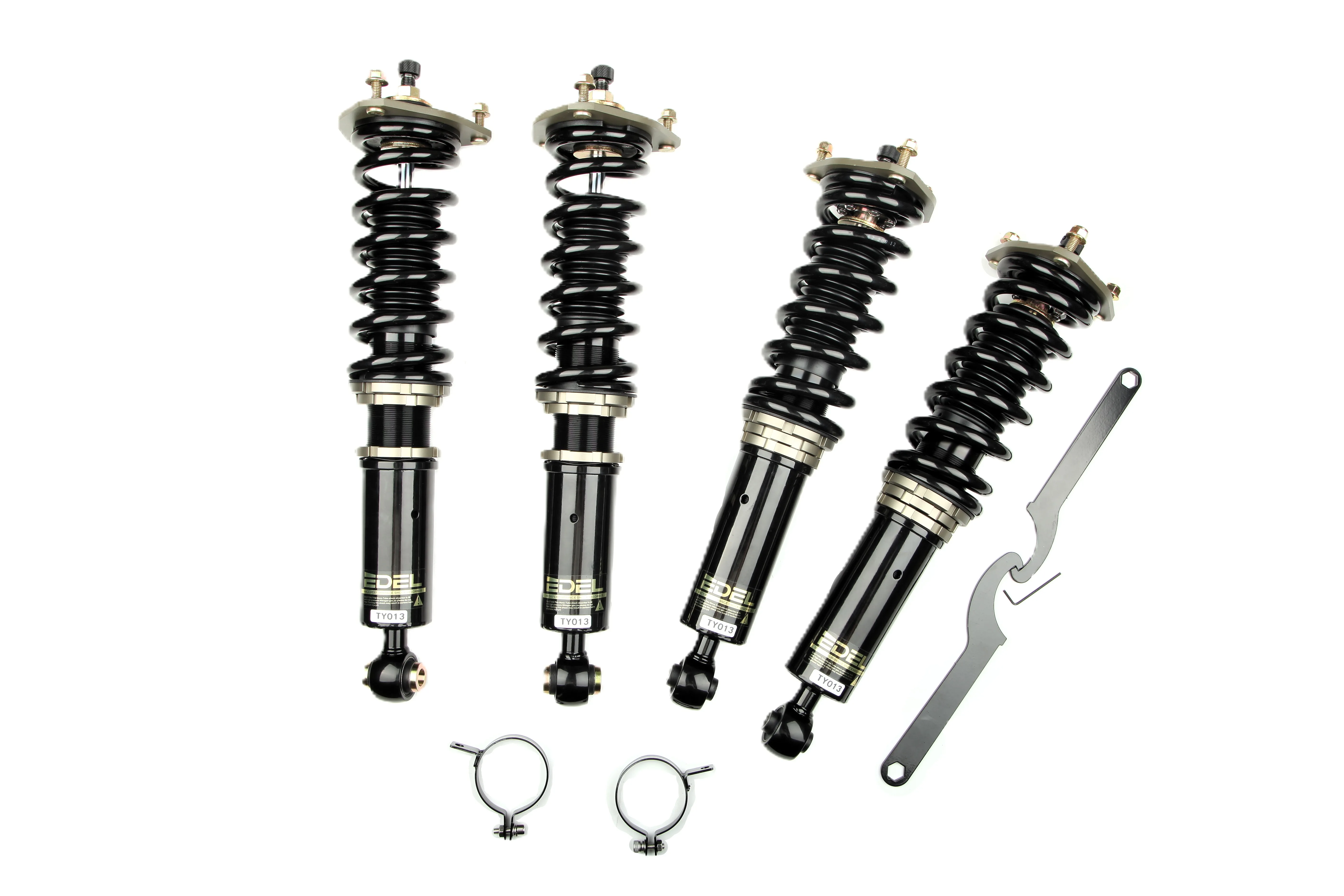 Пружины перед 8 кг, зад 6 кг. Полный комплект регулируемых амортизаторов перед + зад (4шт). Задние койловеры без шаровых соединений (на резиновых втулках). Фултап, регулировка высоты и жесткости 32 щелчка. Производство в г. Шанхай. Собственный завод.