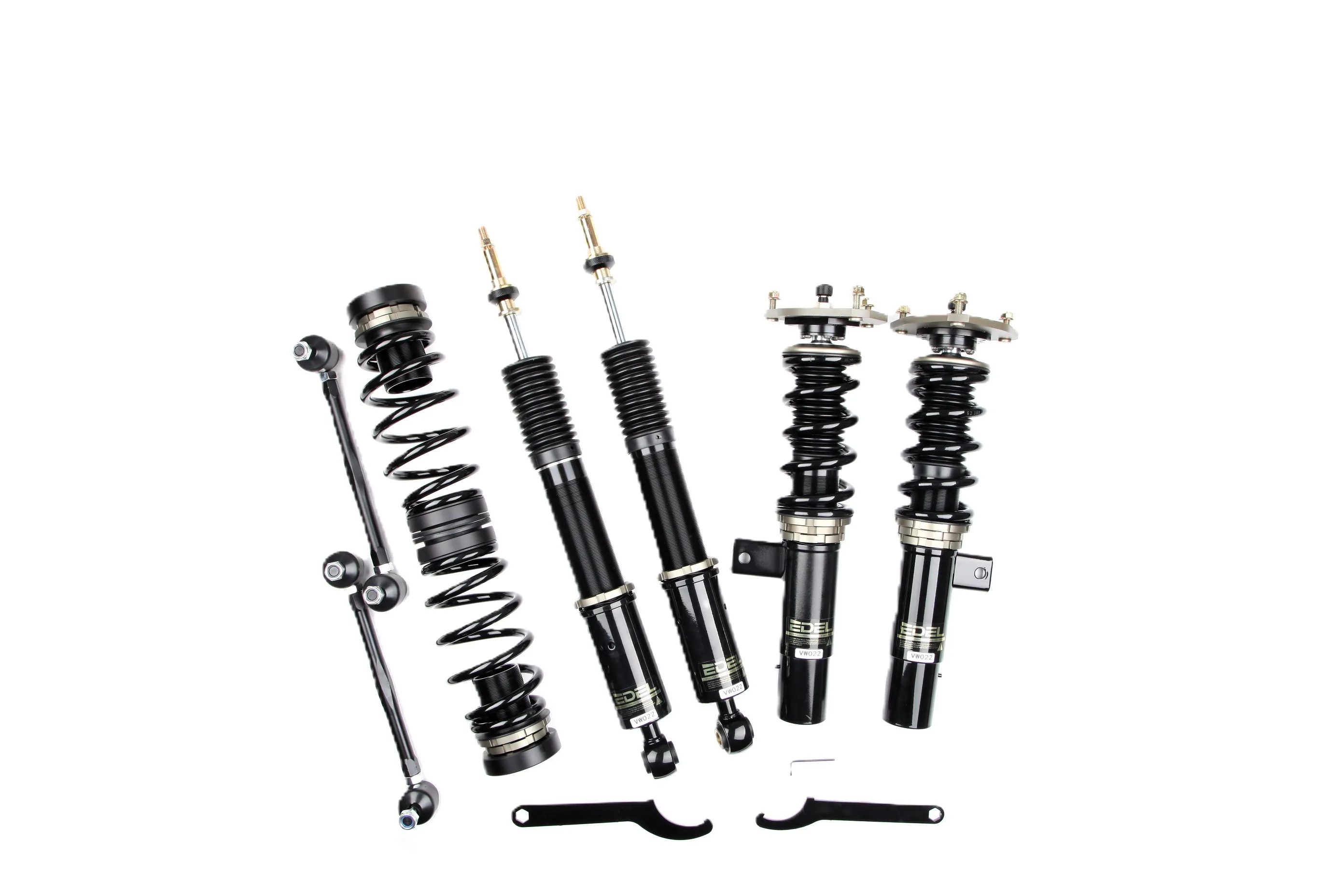 Пружины перед 8 кг, зад 6 кг. Полный комплект регулируемых амортизаторов перед + зад (4шт). Задние койловеры без шаровых соединений (на резиновых втулках). Фултап, регулировка высоты и жесткости 32 щелчка. Производство в г. Шанхай. Собственный завод.